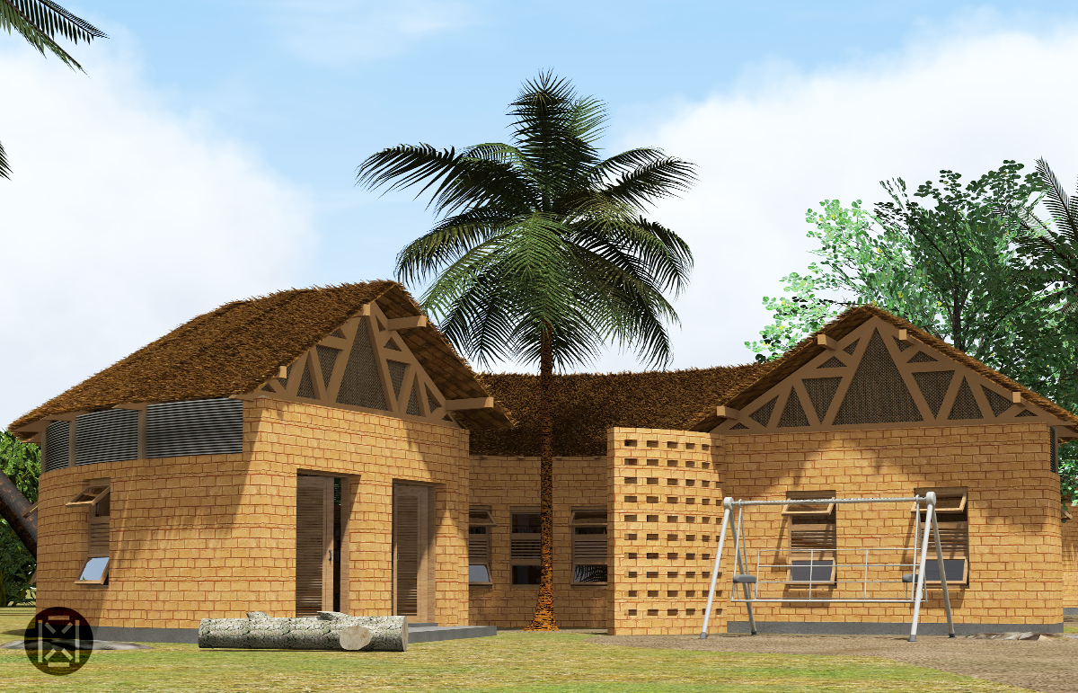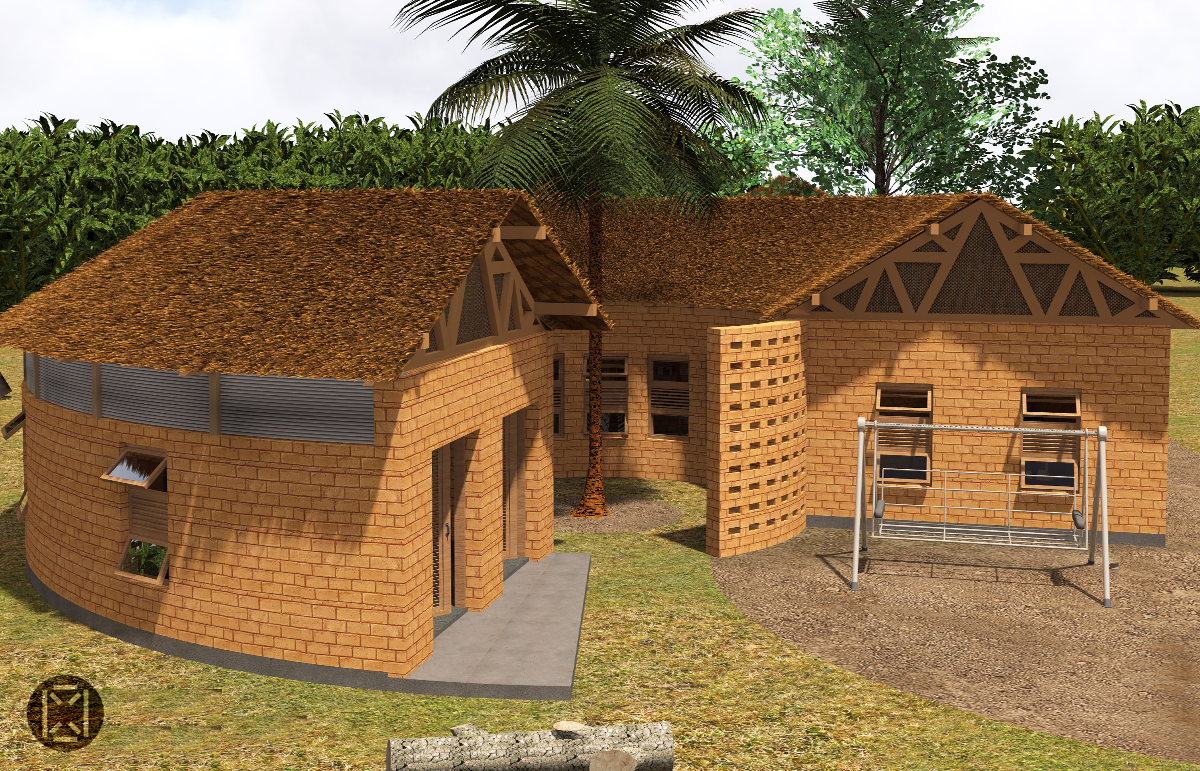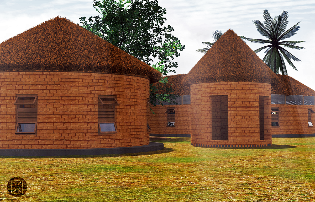 Construit avec des briques produites localement, la structure a un toit hybride avec un toit de chaume d'étain pour des raisons esthétiques et climatiques. Le toit de chaume sert à l'assimilation avec son environnement le plus immédiat.