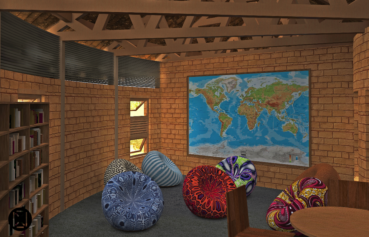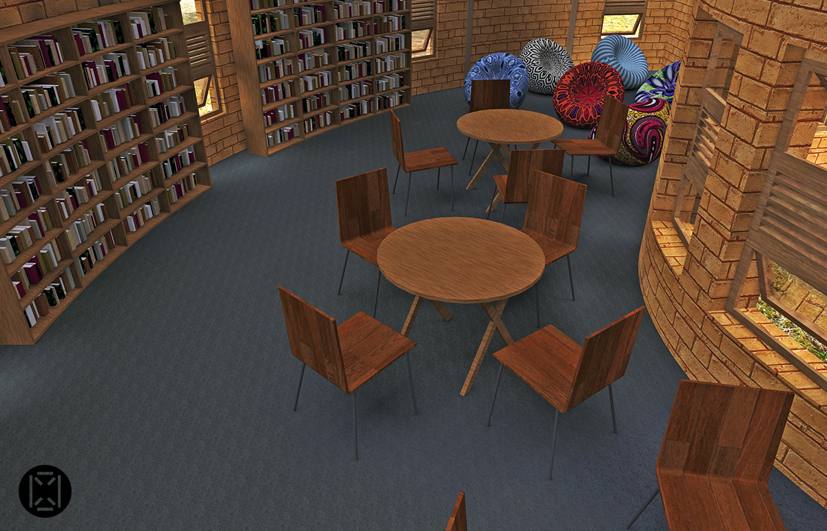 The building offers a curved space, for spatial requirements and climatic reasons, and contains a large reading room connected to an administrative office. Designed to serve as a reading to students in the region, there is a great possibility to turn it into a center for the entire community and a place for adult education.