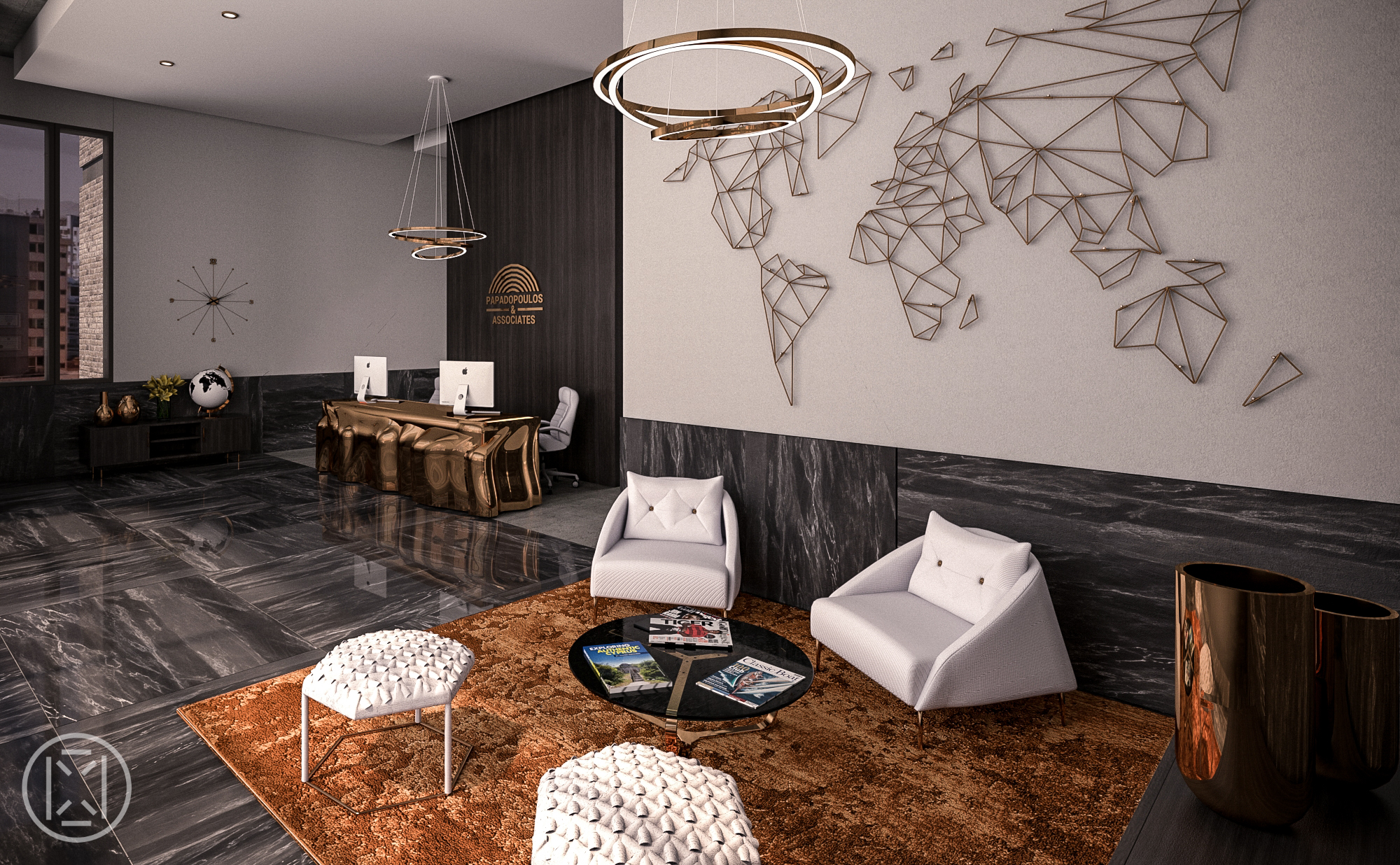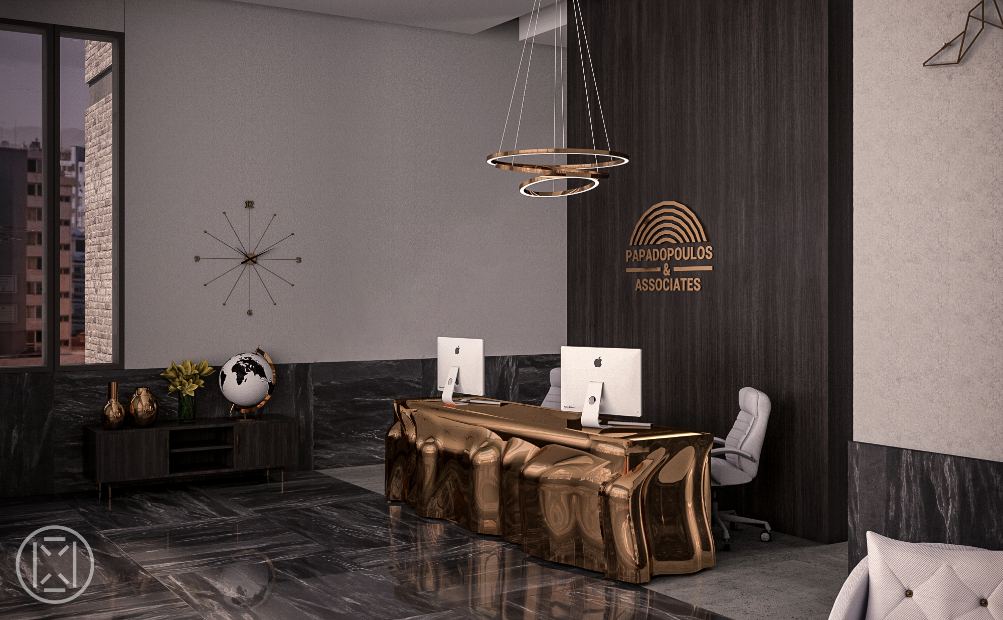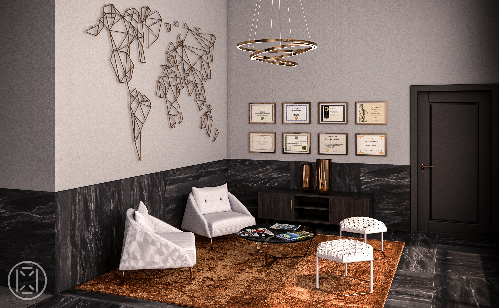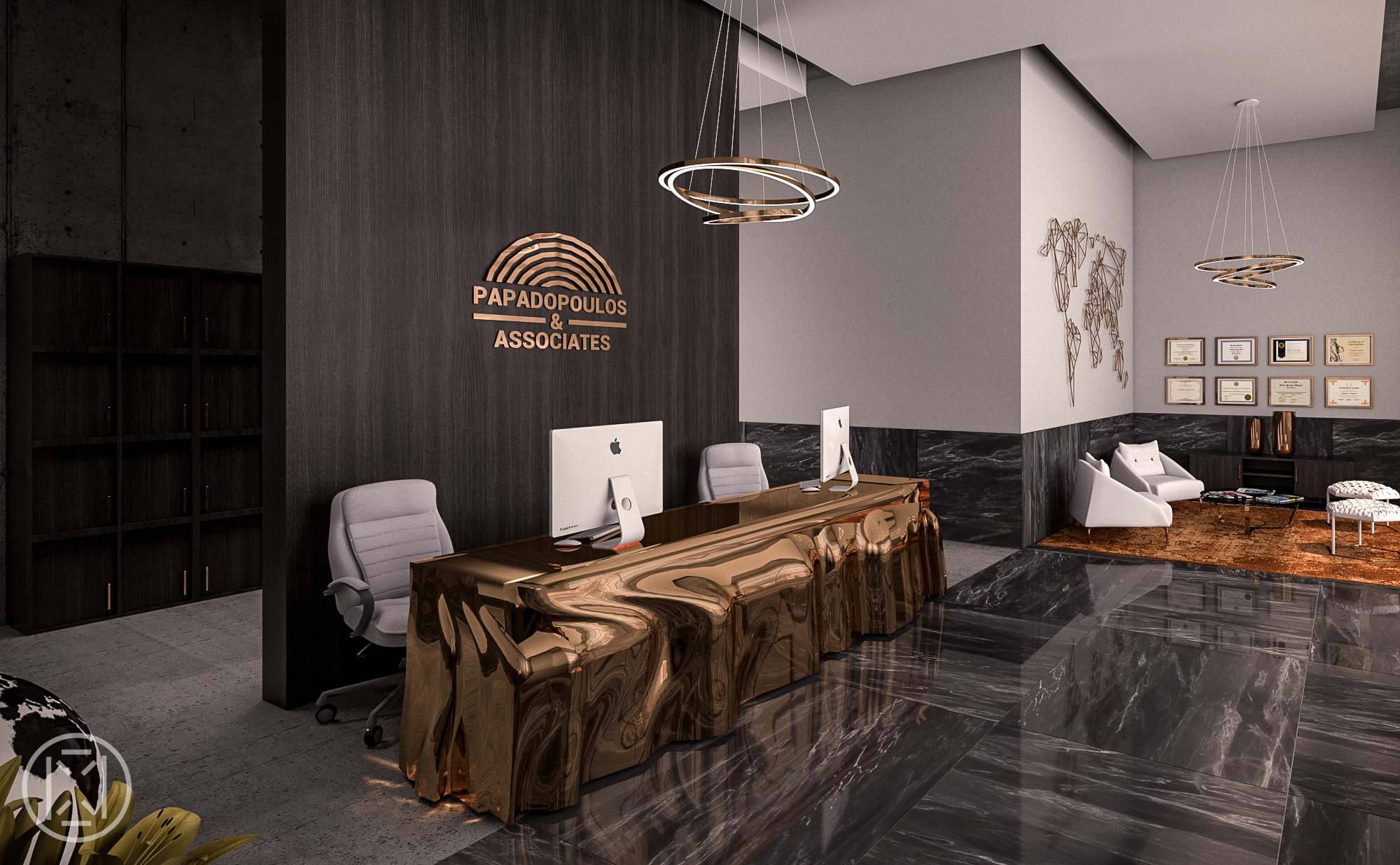 Gold being the assigned theme and since tradition is hard to escape in the legal coterie, instead of a screaming golden shine we preferred a toned-down approach by keeping surfaces conventionally aligned to the elegance bestowed to a law firm atmosphere. Gold was graciously used more as an accent in many parts of the overall rich look.