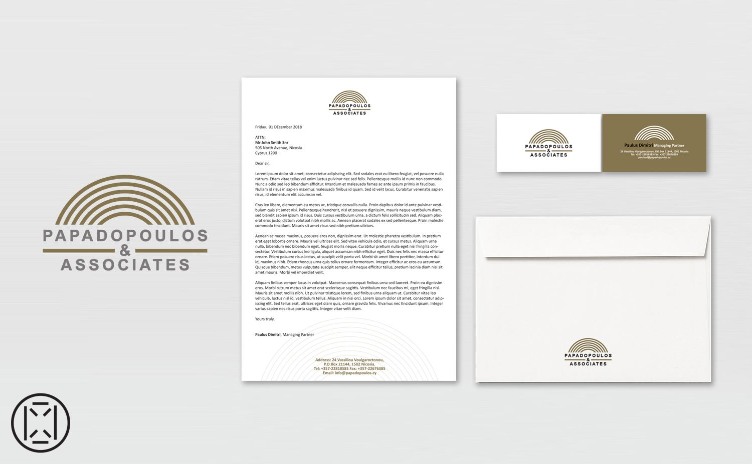 Pour célébrer leur jubilé d’or, le cabinet d’avocats basé à Nicosie nous a demandé de réorganiser leur identité visuelle avec tous les supports marketing (logo, carte de visite, papier à en-tête, dossier de présentation, modèle PowerPoint, signalisation, signature de courrier électronique, magazine de rapport…). Le nouveau logo du cabinet d’avocats, créé il y a trois générations, reflète la nouvelle aube de cette entreprise familiale sachant que trois petits-enfants de son fondateur sont actuellement à l’université pour étudier le droit.