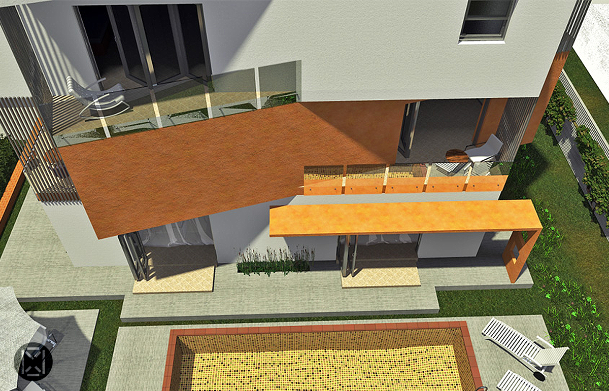 The response is a plan rotated on each of the 3 floors offering different "observation decks" from all the rooms.