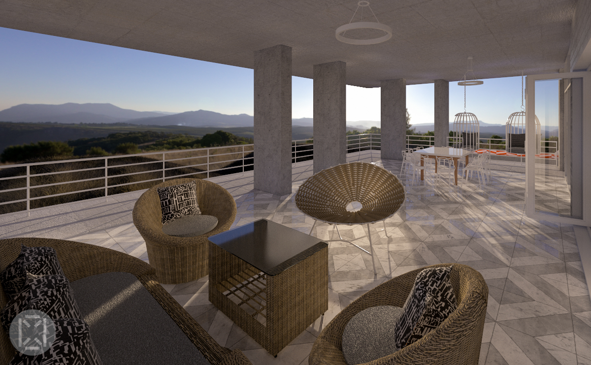 L'allée qui mène à la ferme dans la vallée est accueillie par un escalier en béton à 5 marches qui mène à la plate-forme surélevée avec son grand balcon surplombant la magnifique « Panorama Route » formée par sept villes (Lydenburg, Sabie, Graskop, Pilgirm's Rest, Hazyview, Ohrigstad et Kiepersol), toutes offrant plusieurs points d'intérêt culturels et naturels, comme le Blyde River Canyon, le troisième plus grand canyon du monde avec de nombreuses chutes d’eau. Pour garder la structure de la maison légère dans le noyau, le rez-de-chaussée s'ouvre sur un plan ouvert avec double hauteur avec un salon, une salle à manger et une cuisine avec son arrière-cuisine, deux chambres avec salle de bains. L'escalier au cœur de la maison mène au deuxième étage contenant une salle de télévision surélevée, deux chambres et une salle de bain complète. L'étage s'ouvre également sur un salon vitré-clos et son grand balcon offrant également une vue à 270° sur le paysage magnifique, un point à partir duquel la ferme en-dessous peut être surveillée.