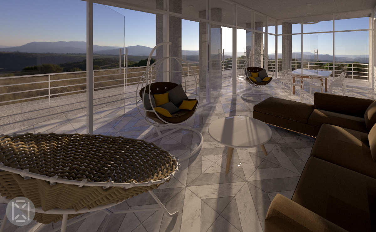 Naked concrete was used to allow beautiful aging and facilitate the blending with natural tones of the rocky hill. The building envelop is handsomely glazed to allow maximum natural light in all the rooms are all time while expanded floor plate slabs serve as awnings to shade rooms from the harsh sun at specific times of the day.