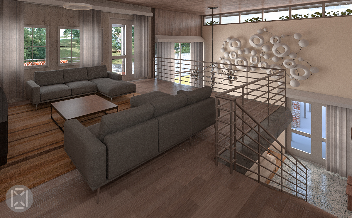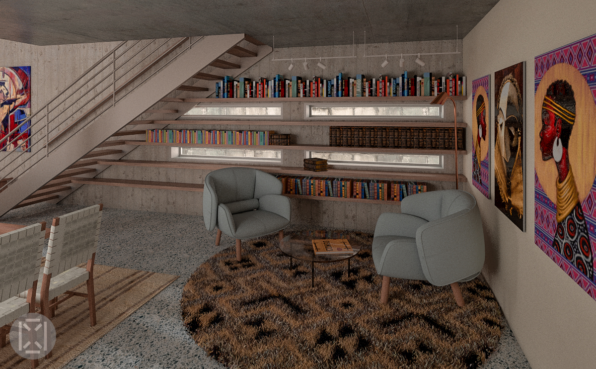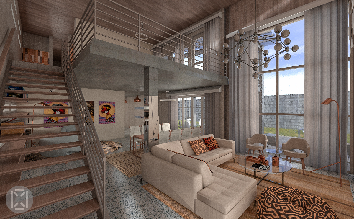Stratégiquement conçu pour maximiser sa structure récupérée, la maison dispose d’un salon en double volume comprenant un salon, une salle à manger, une bibliothèque coiffée par une dalle en béton qui abrite l’espace de divertissement avec télévision qui mène vers son propre véranda ombragée qui est aussi utilisé comme un salon en plein air sous les tropiques.